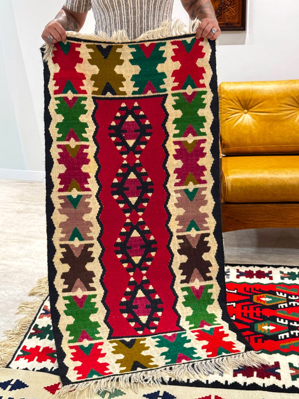 Produzido artesanalmente no Irã, este tapete Kilim é tecido em tear plano com lã natural, garantindo leveza, durabilidade e fácil manutenção.